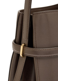 Info & Care Toteme leather bucket bag Top handle, magnetic-fastening strap at front, metallic designer stamp, feet, two internal slip pockets, suede lining Concealed lobster-clasp fastening at top Size & Fit Width: 10.5 inches/ 26.5cm Height: 11.5 inches/ 29cm Depth: 6 inches/ 15cm Top handle drop: 9 inches/ 23cm