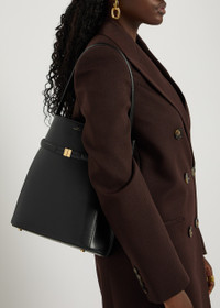 Info & Care Toteme leather bucket bag Top handle, magnetic-fastening strap at front, metallic designer stamp, feet, two internal slip pockets, suede lining Concealed lobster-clasp fastening at top Size & Fit Width: 10.5 inches/ 26.5cm Height: 11.5 inches/ 29cm Depth: 6 inches/ 15cm Top handle drop: 9 inches/ 23cm
