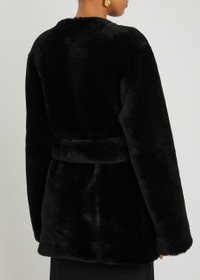 Info & Care Toteme;shearling;jacket Round-neck, belt loops, detachable waist tie, side slip pockets Concealed toggle fastenings through front; 100% lamb shearling Specialist clean Size & Fit Length shoulder to hem: 32 inches/ 81.5cm Midweight Relaxed;fit, use tie to cinch waist Model is 5'10"/ 178cm and wears a size;FR36