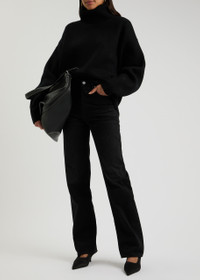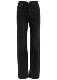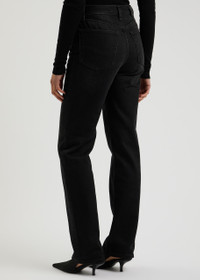 Info & Care Toteme denim jeans High-rise fit, straight-leg cut, belt loops, five pockets, designer-engraved buttons, designer plaque at back, whiskered and faded finish Partially concealed button fastenings at front 100% organic cotton Machine wash cold inside out to avoid colour transfer Size & Fit Front rise: 11 inches/ 28cm Inside leg length: 30.5 inches/ 77.5cm Midweight Model is 5'8"/ 172cm and wears a size W27