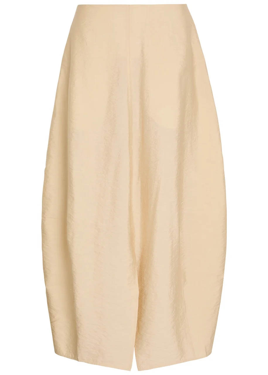 Info & Care Toteme silk-blend;skirt Crinkled finish, side slip pockets, front hem split, matte finish Concealed zip fastening;at back 77% silk, 23% polyamide Dry clean; Size & Fit Length waist to hem: 38 inches/ 96.5cm Midweight Relaxed from the hips Model is 5'9"/ 175cm and wears a size;FR36