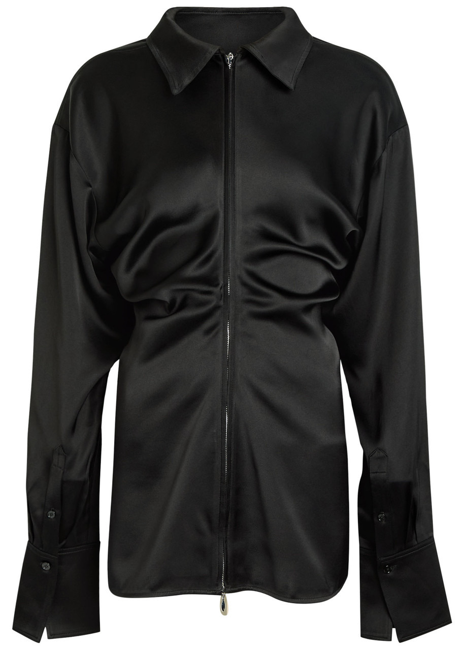 Info & Care Toteme satin;shirt Draped design, button-fastening flared cuffs with pleats Zip fastenings through front 100% viscose Dry clean Size & Fit Length shoulder to hem: 29 inches/ 73.5cm Midweight Slim fit, cinched at the waist Model is 5'10"/ 178cm and wears a size;FR36