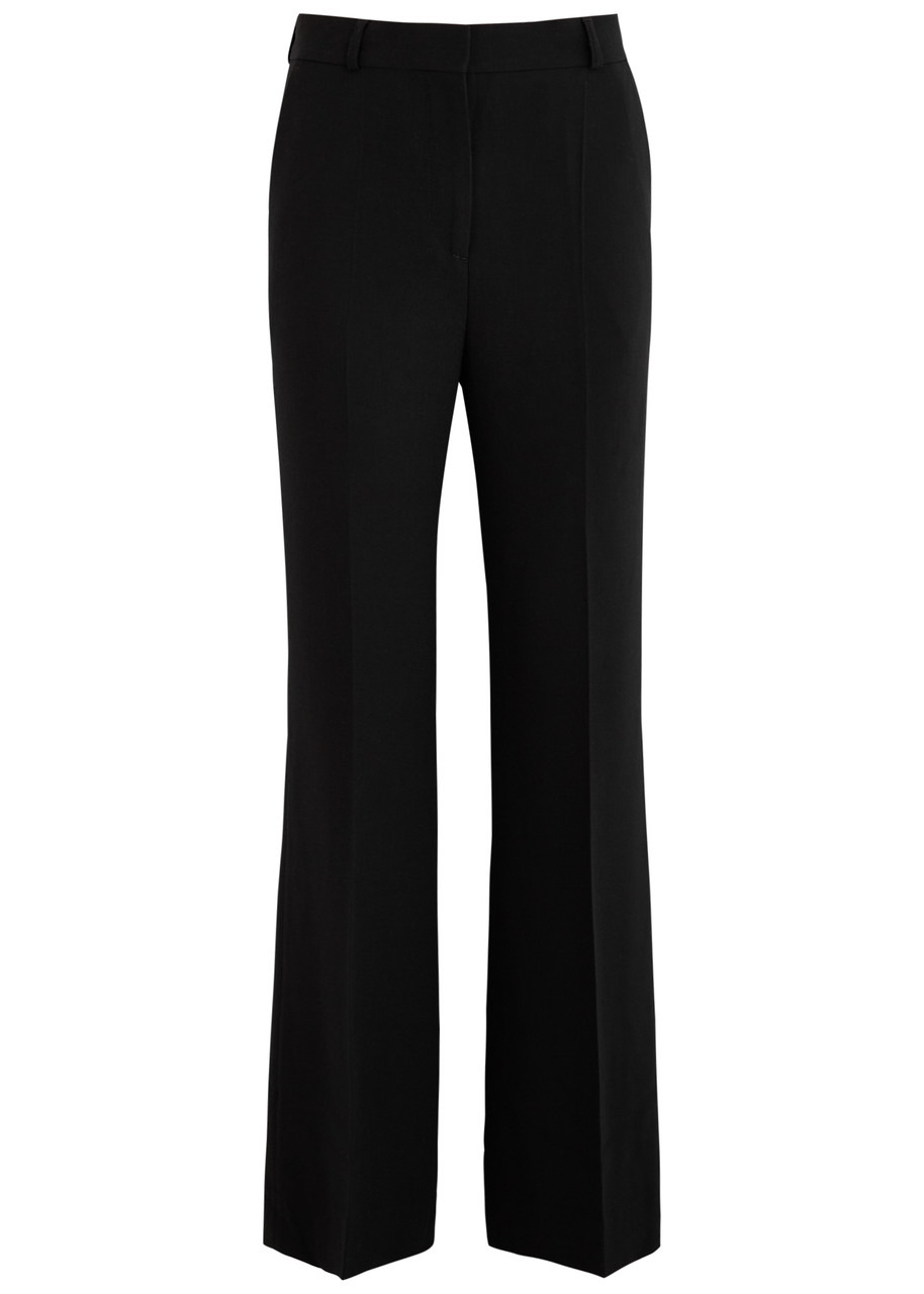 Info & Care Toteme crepe trousers; Belt loops, two slip pockets, pressed creases through legs, two button-fastening back pockets Concealed button, hook and zip fastenings at front; 77% viscose, 23% virgin wool; Dry clean; Size & Fit Inside leg length: 31 inches/ 79cm Midweight; Flared-leg cut; Designed to sit on the waist Model is 5'8"/ 172cm and wears a size;FR36