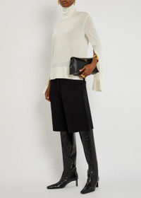 Info & Care Toteme knitted shorts Elasticated ribbed waistband, side slip pockets Concealed zip, hook and press-stud fastenings at front 53% viscose, 45% recycled polyamide, 2% elastane Hand wash Size & Fit Length waist to hem:;24 inches/ 61cm Midweight Relaxed fit, slim across the waist Model is 5'10"/ 178cm and wears a size small