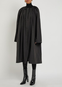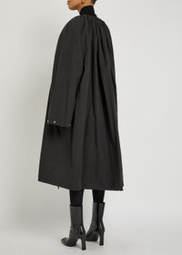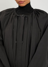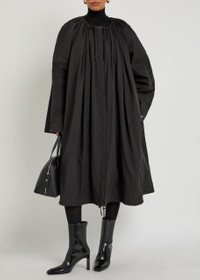 Info & Care Toteme cotton-poplin dress Toggle-fastening round-neck, press-stud embellished cuffs, toggle-fastening hem Partially concealed press-stud and zip fastening through front 74% organic cotton, 26% recycled polyamide Dry clean Size & Fit Length shoulder to hem: 46 inches/ 116.5cm Midweight Loose fit Model is 5'10"/ 178cm and wears a size small
