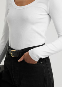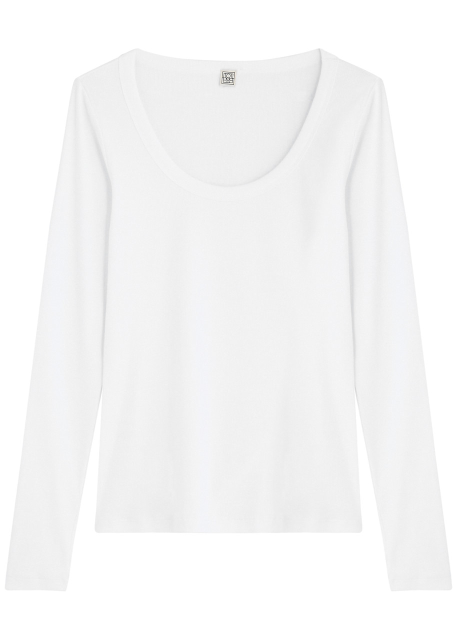 Info & Care Toteme stretch-cotton top; Scoop neck, ribbed Slips on; 97% organic cotton, 3% elastane; Machine wash; Size & Fit Length shoulder to hem: 24 inches/ 61cm; Midweight; Slim fit; Model is 5'8"/ 172cm and wears a size small;