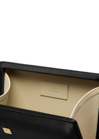 Info & Care Toteme satin box clutch Designer plaque, structured frame, leather lining Magnetic fastening Size & Fit Width: 6.5 inches/ 17cm Height:;6 inches/ 15cm Depth: 1.5 inches/ 4cm
