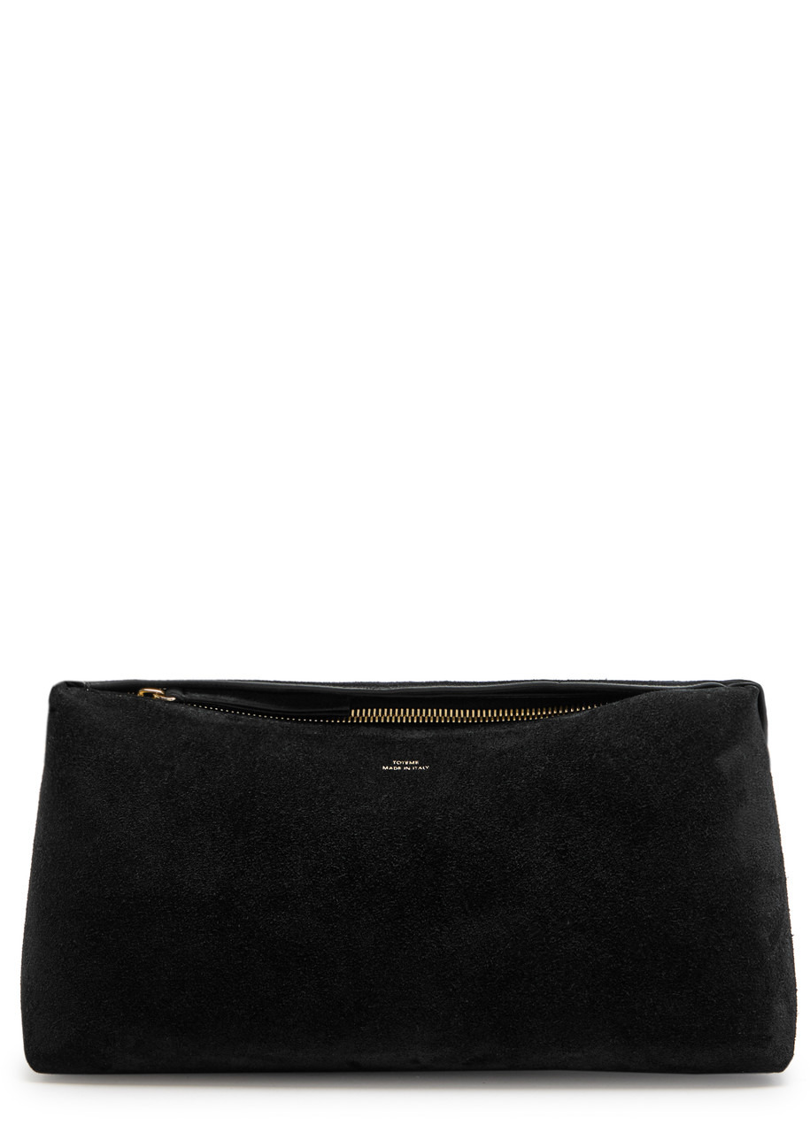 Info & Care Toteme suede clutch Top handle, metallic designer stamp, internal card slot, fully lined Zip-fastening across top Size & Fit Width: 11.5 inches/ 29cm Height: 6 inches/ 15cm Depth: 4 inches/ 10cm Top handle drop: 6 inches/ 15cm