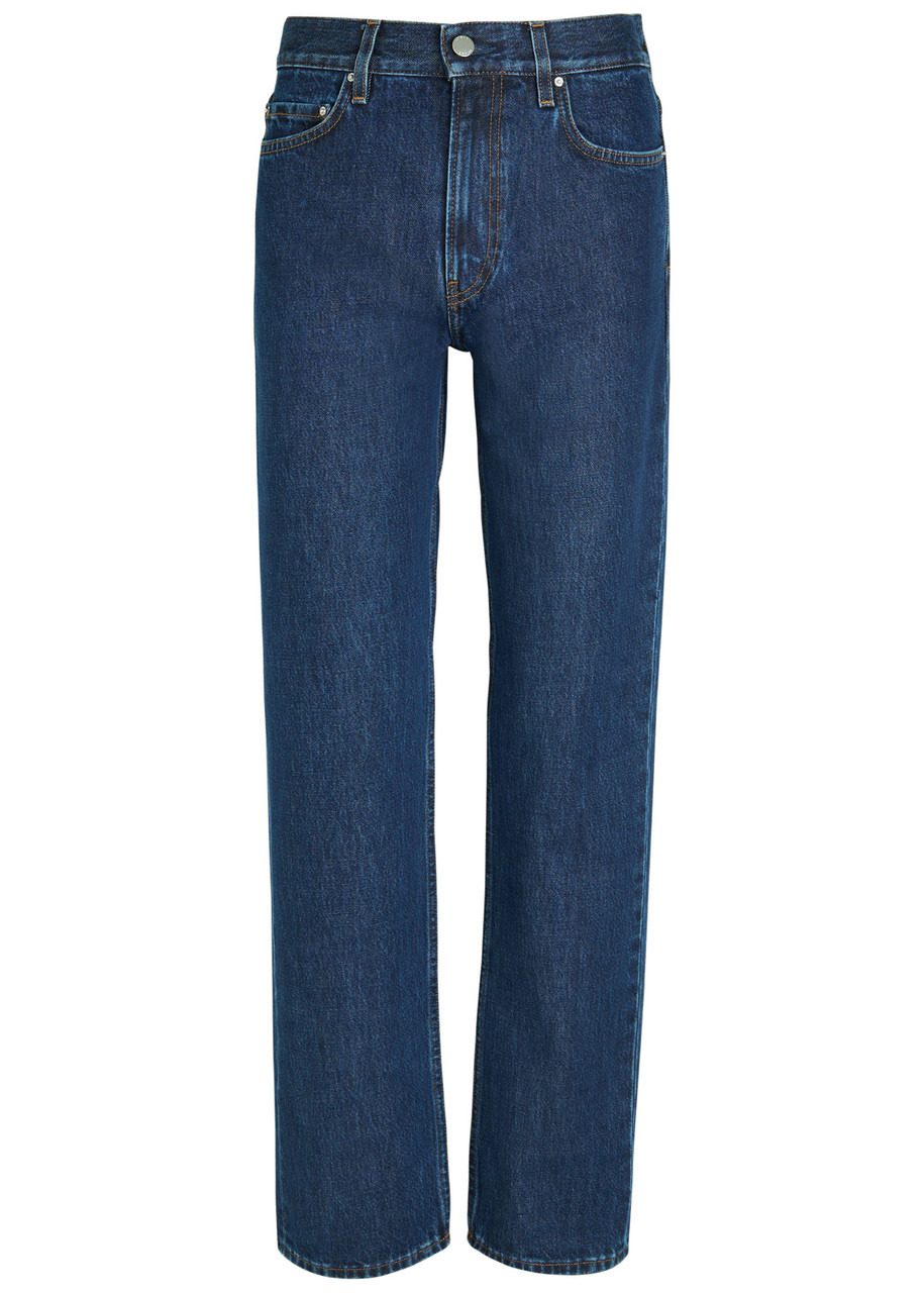 Info & Care Toteme denim jeans Low-rise fit, straight-leg cut, belt loops, five pockets, designer plaque, slightly whiskered, faded finish Concealed zip and button fastening at front 100% organic cotton Machine wash cold inside to avoid colour transfer Size & Fit Front rise: 11 inches/ 28cm Inside leg length: 31 inches/ 79cm Midweight Model is 5'9"/ 175cm and wears a size W27