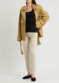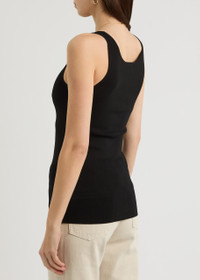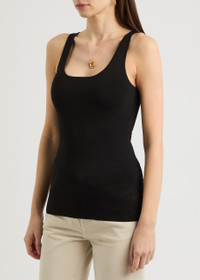 Info & Care Toteme stretch-knit tank; Scoop neck, ribbed trims, side splits; Slips on; 53% viscose, 45% recycled polyamide, 2% elastane; Hand wash; Size & Fit Length shoulder to hem: 25 inches/ 63.5cm; Midweight; Slim fit; Model is 5'9"/ 175cm and wears a size small;