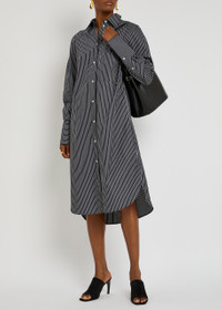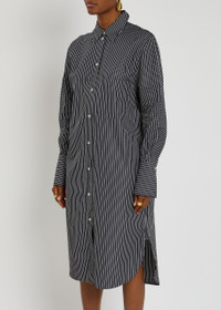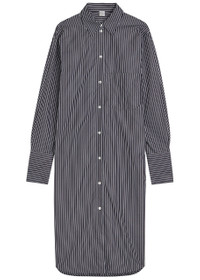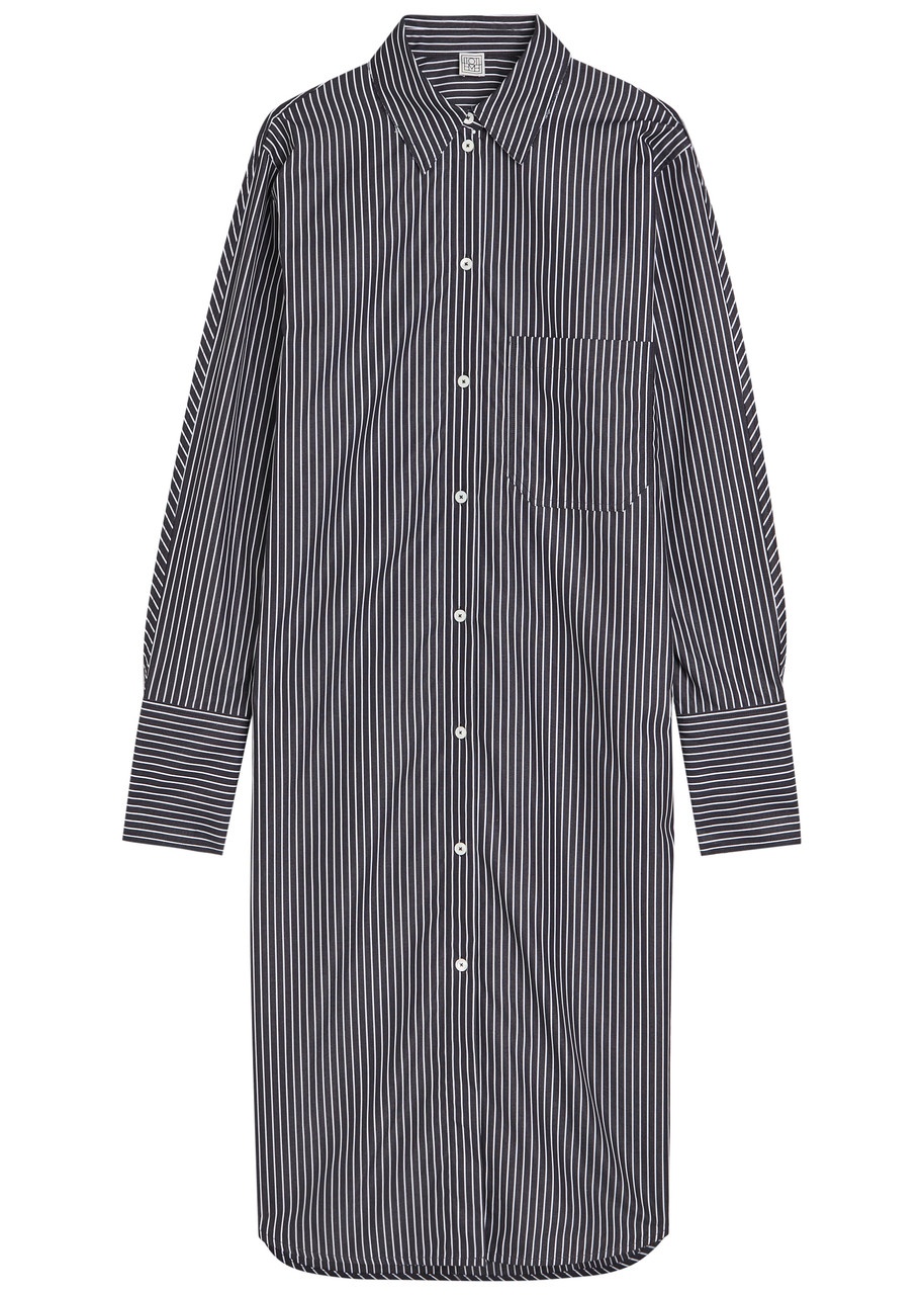 Info & Care Toteme cotton shirt dress Striped, raw trim at collar, button-fastening cuffs, chest patch pocket, box pleat at back, sides splits, curved hem Button-fastenings through front 100% organic cotton Machine wash Size & Fit Length shoulder to hem: 44 inches/ 112cm Midweight Relaxed fit Model is 5'10"/ 178cm and wears a size FR36