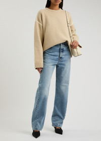 Info & Care Toteme denim jeans Mid-rise fit, straight-leg cut, belt loops, five pockets, contrast stitching, designer plaque, twisted side seams, distressed and bleached finish Concealed zip and button fastening at front 100% organic cotton Machine wash cold inside to avoid colour transfer Size & Fit Front rise: 11 inches/ 28cm Inside leg length: 27.5 inches/ 70cm Midweight Model is 5'8"/ 172cm and wears a size W27