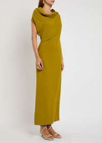 Info & Care TOVE crepe de chine dress Draped, cowl-neck, dolman sleeves, back vent, fully lined; Concealed zip fastening at side; 70% viscose, 28% wool, 2% elastane Dry clean; Size & Fit Length shoulder to hem: 54 inches/;137cm Midweight Slim fit, fitted across the waist; Model is 5'9"/ 175cm and wears a size;FR36