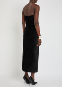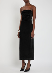 Sabella Strapless Ruched Cotton-blend Velvet Midi Dress