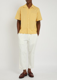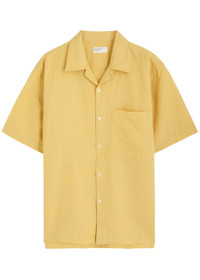 Info & Care Universal Works linen-blend shirt Ccamp collar, chest patch pocket, side splits at hem, creased finish Button fastenings through front 61% linen, 39% cotton Machine wash Size & Fit Length shoulder to hem: 26.5 inches/ 67cm Midweight Relaxed, slightly boxy fit Model is 6'1"/ 185cm, chest size 38.5 inches and wears a size medium