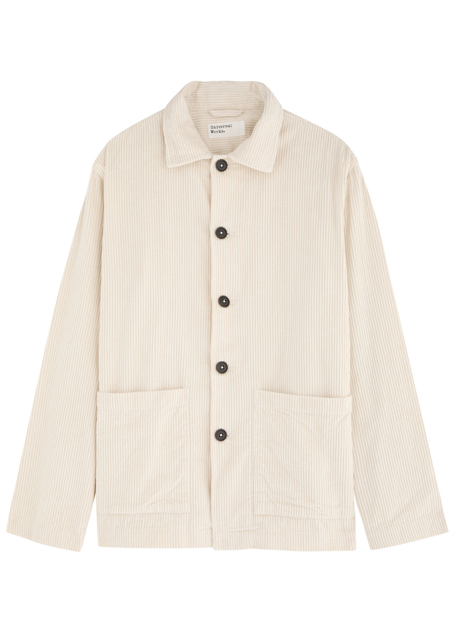 Info & Care Universal Works corduroy overshirt Dropped shoulders, front patch pockets Button fastenings through front 100% cotton Machine wash Size & Fit Length shoulder to hem: 28 inches/ 71cm Midweight Relaxed fit Model is 6'1"/ 185cm, chest size 38 inches and wears a size medium