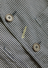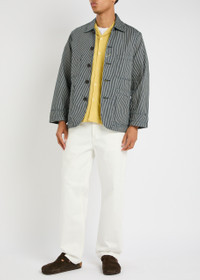 Info & Care Universal Works;cotton;overshirt jacket Striped,;four patch pockets at front, back vent, embroidered details, internal button-fastening patch pocket, internal patch pocket Button fastenings through front 100%;cotton Dry clean Size & Fit Length shoulder to hem: 28 inches/ 71cm Midweight Regular fit Model is 6'1"/ 185cm, chest size 38 inches and wears a size medium