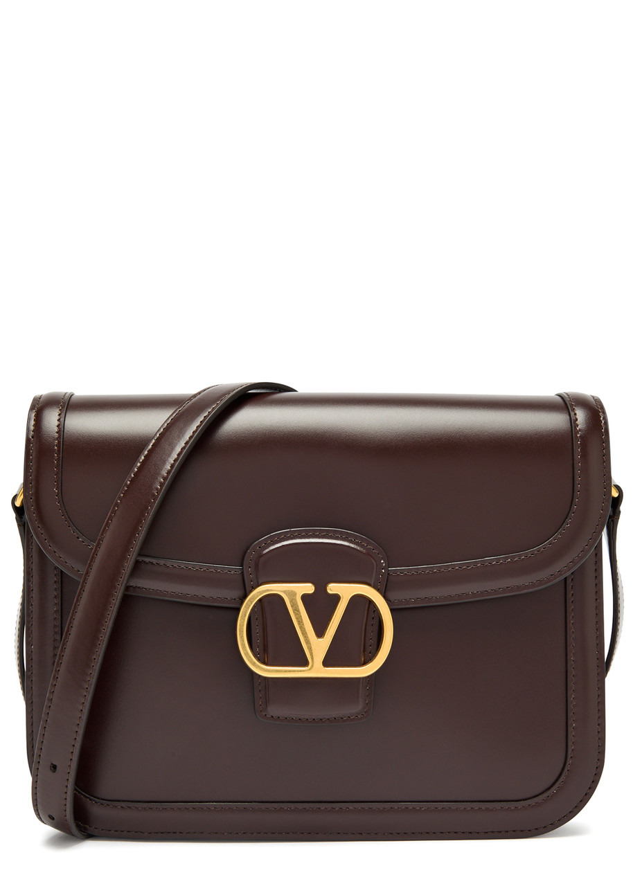 Info & Care Valentino Garavani leather shoulder bag; Comes with a shoulder strap extender Adjustable shoulder strap, Vlogo plaque, three internal compartments, internal press-stud fastening slip pocket, fully lined Concealed magnetic press-stud fastening at flap front; Size & Fit Width: 9.5 inches/ 24cm Height: 7 inches/ 18cm Depth: 2 inches/ 5cm Min. shoulder strap drop: 12 inches/ 30.5cm Max. shoulder strap drop: 14 inches/ 35.5cm