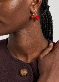 Info & Care Valentino Garavani brass earrings Cherry design, VLogo plaque, antique brass finish Post fastening for pierced ears Presented in a designer-stamped pouch Please note, we are unable to refund or exchange for pierced earrings Size & Fit Dimensions: 2cm x 3cm