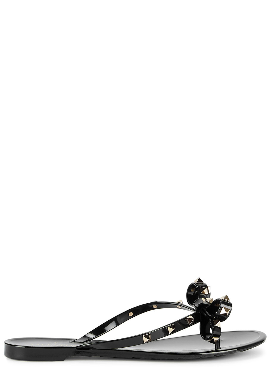 INFO & CARE - Valentino Garavani rubber flip flops - Pale gold-tone stud embellishments bow design thong toe post floral detail at sole - Slip-on - Come with a dust bag SIZE & FIT - Only available in full sizes go up to the nearest whole size if you take a half size