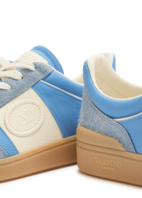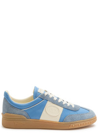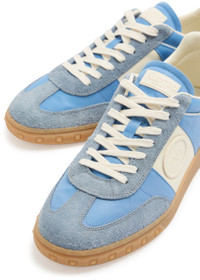 Info & Care Valentino Garavani nylon sneakers Leather and brushed suede panels, rubberised designer plaque at padded tongue, VLogo embossed applique at side, padded ankle, embossed logo and Rockstuds at textured rubber midsole, rubber sole, round toe Lace-up front Size & Fit Only available in full sizes, go up to the nearest whole size if you take a half size;