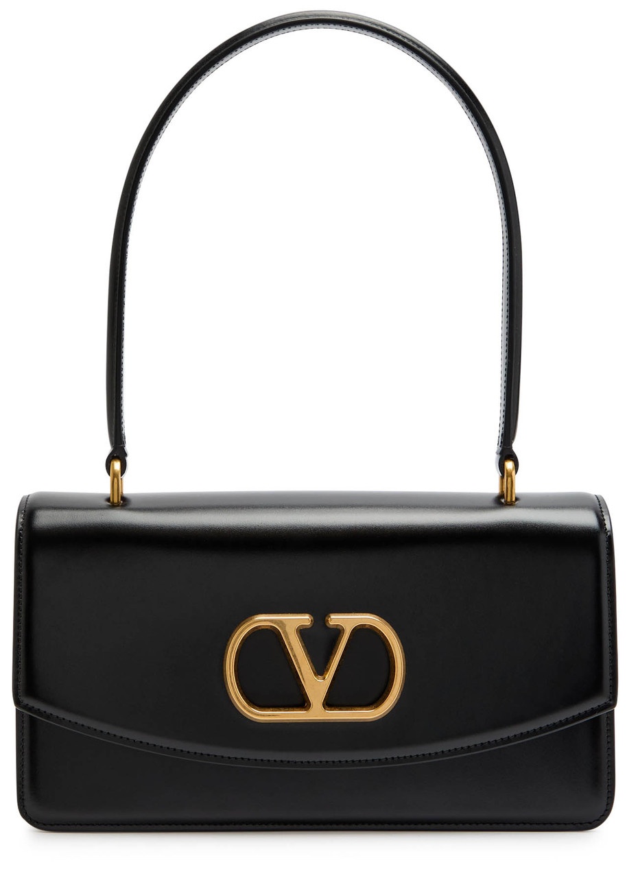 Info & Care Valentino Garavani leather shoulder bag; Top handle, VLogo plaque, two internal compartments, internal zip-fastening pocket, internal slip pocket, fully lined Concealed magnetic press-stud fastening at flap front Size & Fit Width: 10 inches/ 25.5cm Height: 5.5 inches/ 14cm Depth: 2.75 inches/ 7cm Top handle drop: 8.25 inches/ 21cm