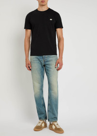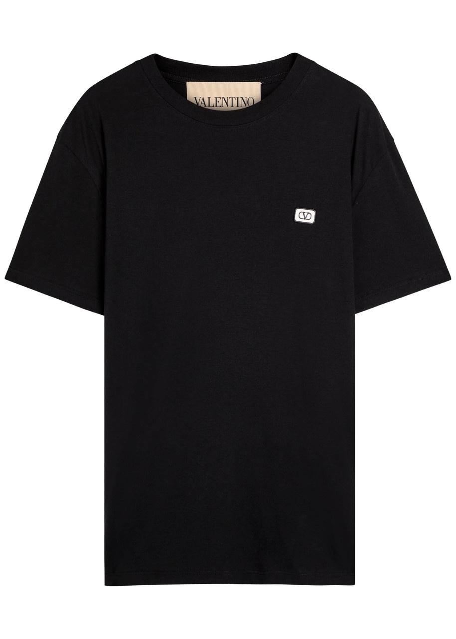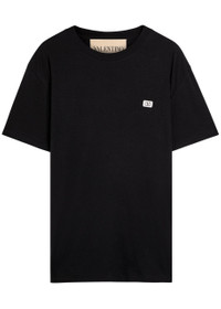 Info & Care Valentino cotton T-shirt Ribbed crew-neck, embroidered VLogo plaque at chest Slips on 100% cotton; embroidery; 100% polyester Hand wash; Size & Fit Length shoulder to hem: 27 inches/ 68.5cm Midweight Regular fit, slim across the shoulders Model is 6'3"/ 191cm, chest size 38 inches and wears a size medium