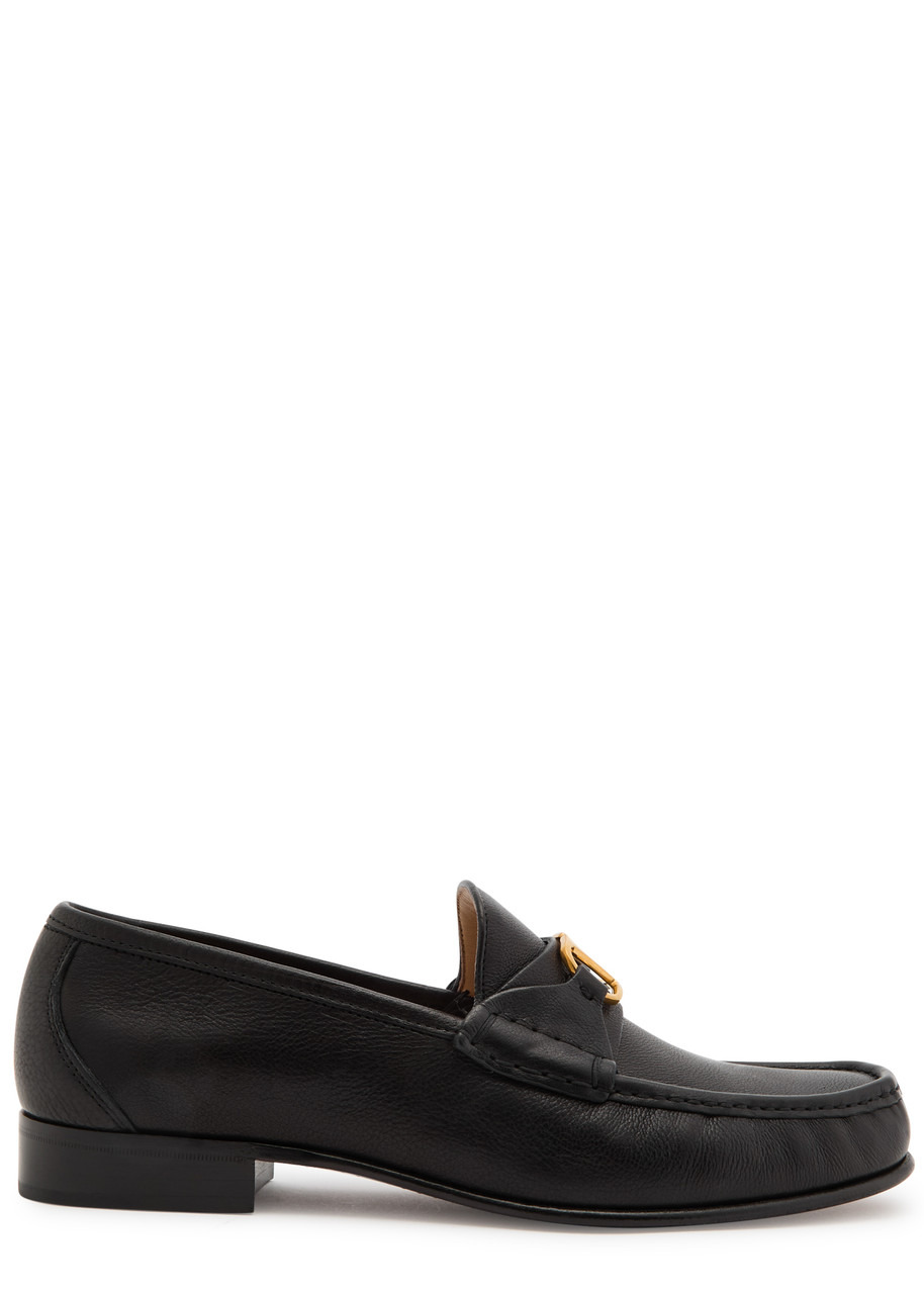 Info & Care Valentino Garavani leather loafers Stacked wooden heel measures approximately 1 inch/ 25mm; Vlogo plaque, almond toe; Slips on; Size & Fit Only available in full sizes, go up to the nearest whole size if you take a half size;