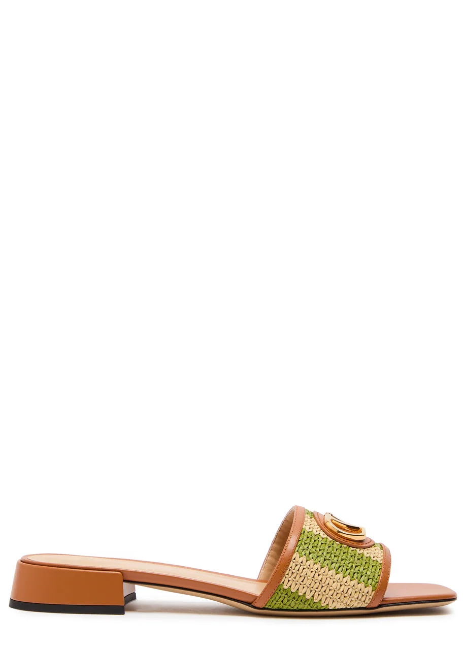 Valentino Garavani Vlogo Raffia and Leather Sliders