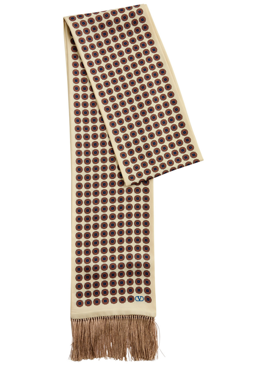 Valentino Printed Fringed Silk-satin Scarf