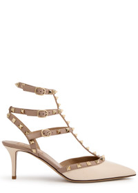 Info & Care Valentino Garavni patent leather pumps Heel measures approximately 2.5 inches/ 65mm Rockstud embellishments, cut-out sides, pointed toe Adjustable buckle-fastening straps Size & Fit Only available in full sizes, go up to the nearest whole size if you take a half size