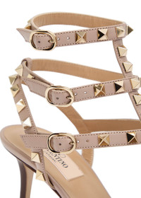 Info & Care Valentino Garavani leather pumps Heel measures approximately 3 inches/ 65mm Two-tone, caged design, Rockstud embellishments, pointed toe Adjustable buckle-fastening ankle straps Size & Fit Only available in full sizes, go up to the nearest whole size if you take a half size;
