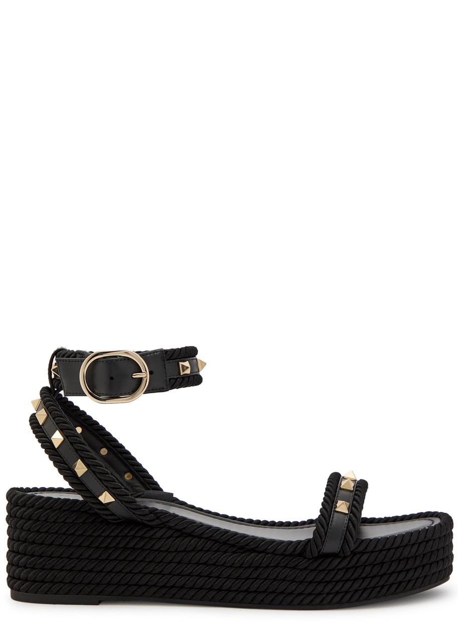 Info & Care Valentino Garavani;silk;espadrille wedge sandals Flatform heel measures approximately 45mm/ 1.75 inches with a 20mm/ 0.8 inch platform Rockstud embellishments, twisted rope design,;leather trims, open square toe Adjustable buckle-fastening ankle strap Size & Fit Only available in full sizes, go up to the nearest whole size if you take a half size
