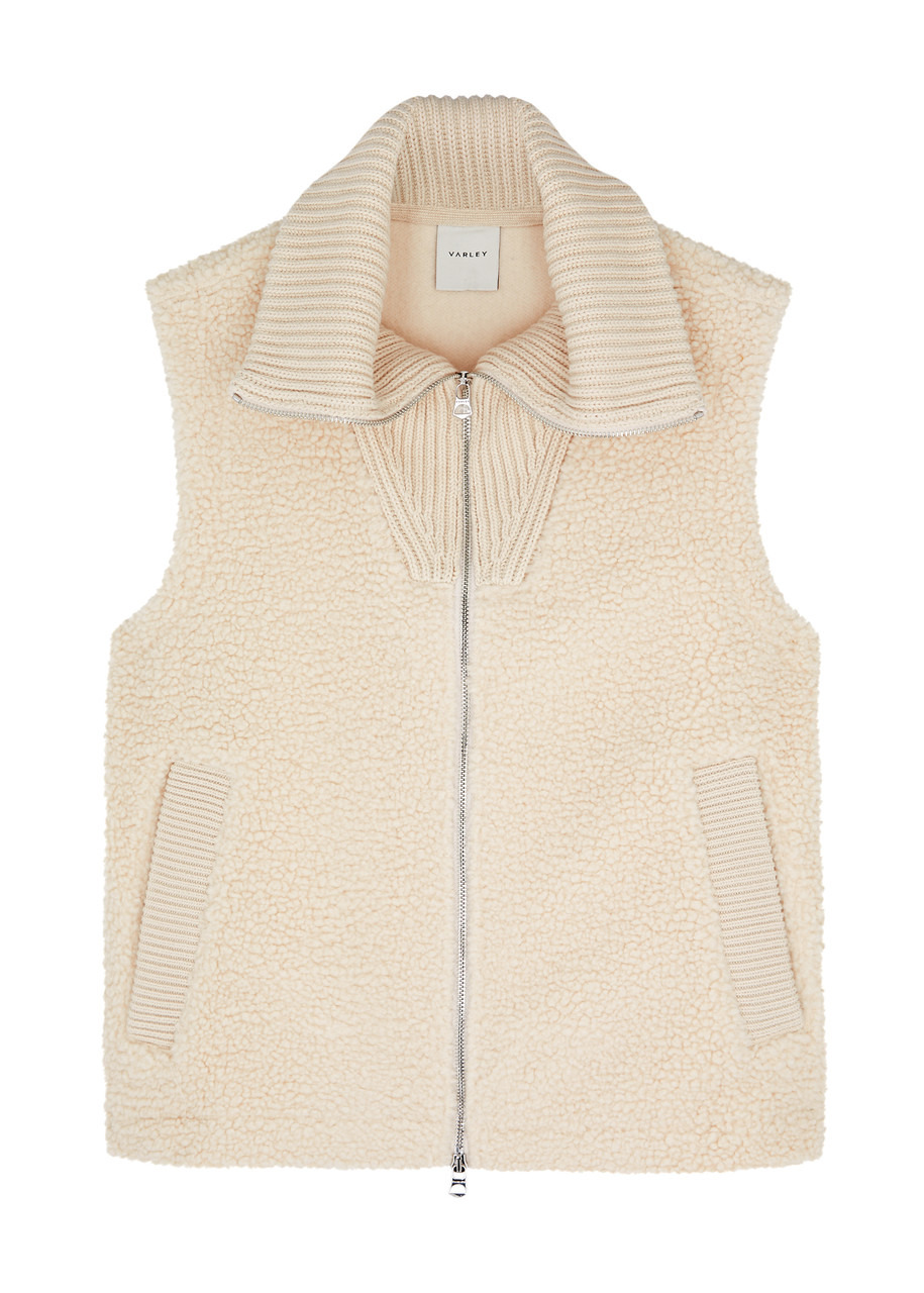 INFO & CARE - Varley fleece gilet - Wide collar, two slip pockets, designer tag at side, ribbed trims - Zip fastening through front - 100% polyester; ribbing: 100% cotton - Machine wash SIZE & FIT - Length shoulder to hem: 24 inches/ 61cm - Midweight - Relaxed fit - Model is 5'10"/ 178cm and wears a size small