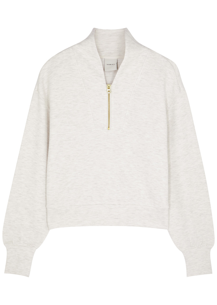 INFO & CARE - Varley stretch-jersey sweatshirt - Stand collar, zip-fastening neck, dropped shoulders, elasticated cuffs, designer tag at side - Slips on - 72% viscose, 23% polyester, 5% elastane - Machine wash SIZE & FIT - Length shoulder to hem: 21.5 inches/ 54.5cm - Midweight - Relaxed fit, slightly cropped - Model is 5'9"/ 175cm and wears a size small