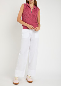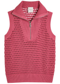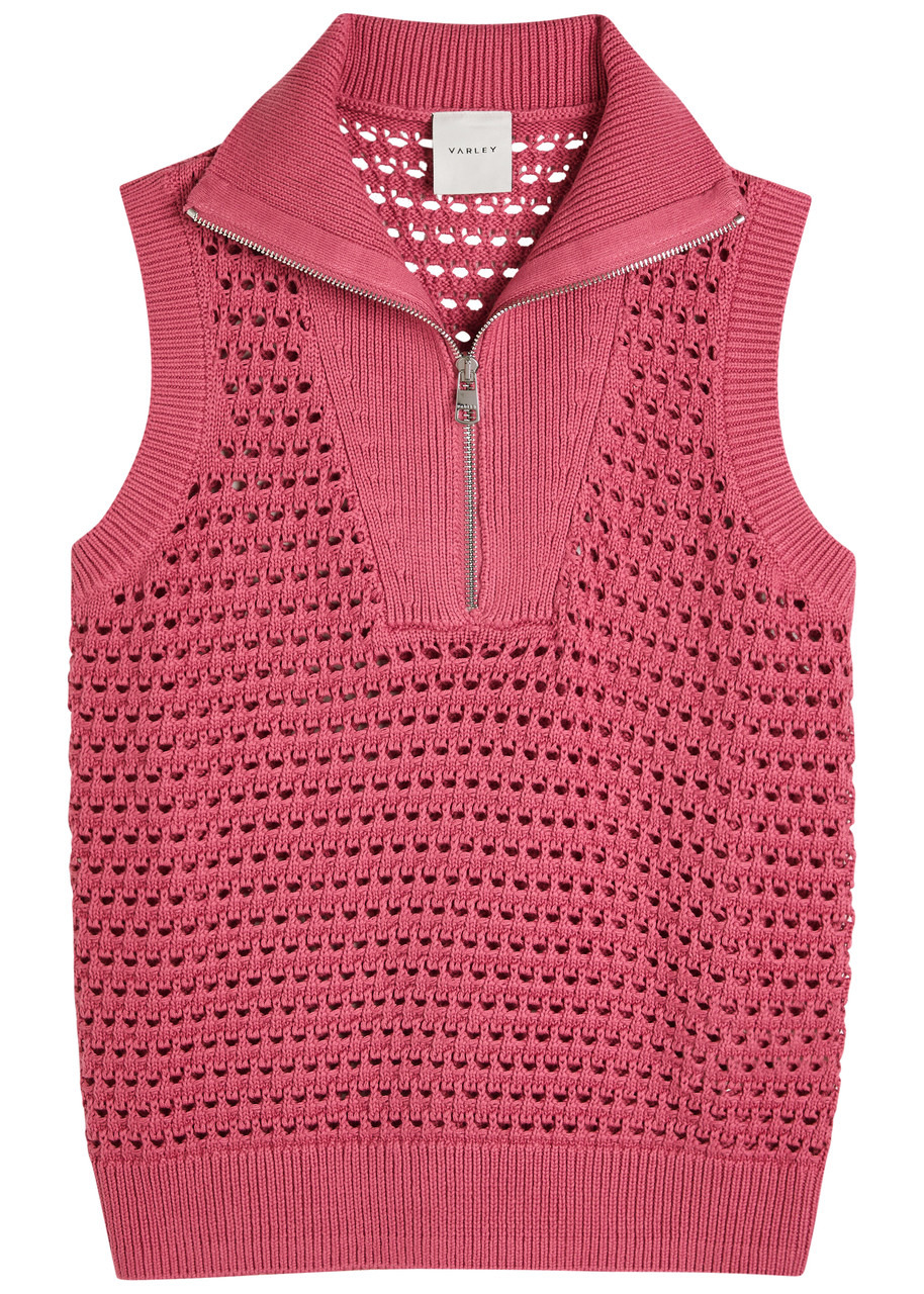 Info & Care Varley open-knit;vest Zip-fastening high neck, ribbed trims Slips on 100% cotton Machine wash Size & Fit Length shoulder to hem: 22 inches/ 56cm Midweight Relaxed, boxy fit Model is 5'9"/ 175cm and wears a size small