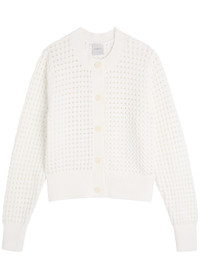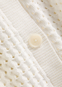 Info & Care Varley open-knit;jacket Round neck, ribbed trims Button fastenings through front 60% cotton, 40% polyester Dry clean Size & Fit Length shoulder to hem: 23.5 inches/ 59.5cm Midweight Loose fit, cut for a regular fit Model is 5'9"/ 175cm and wears a size small