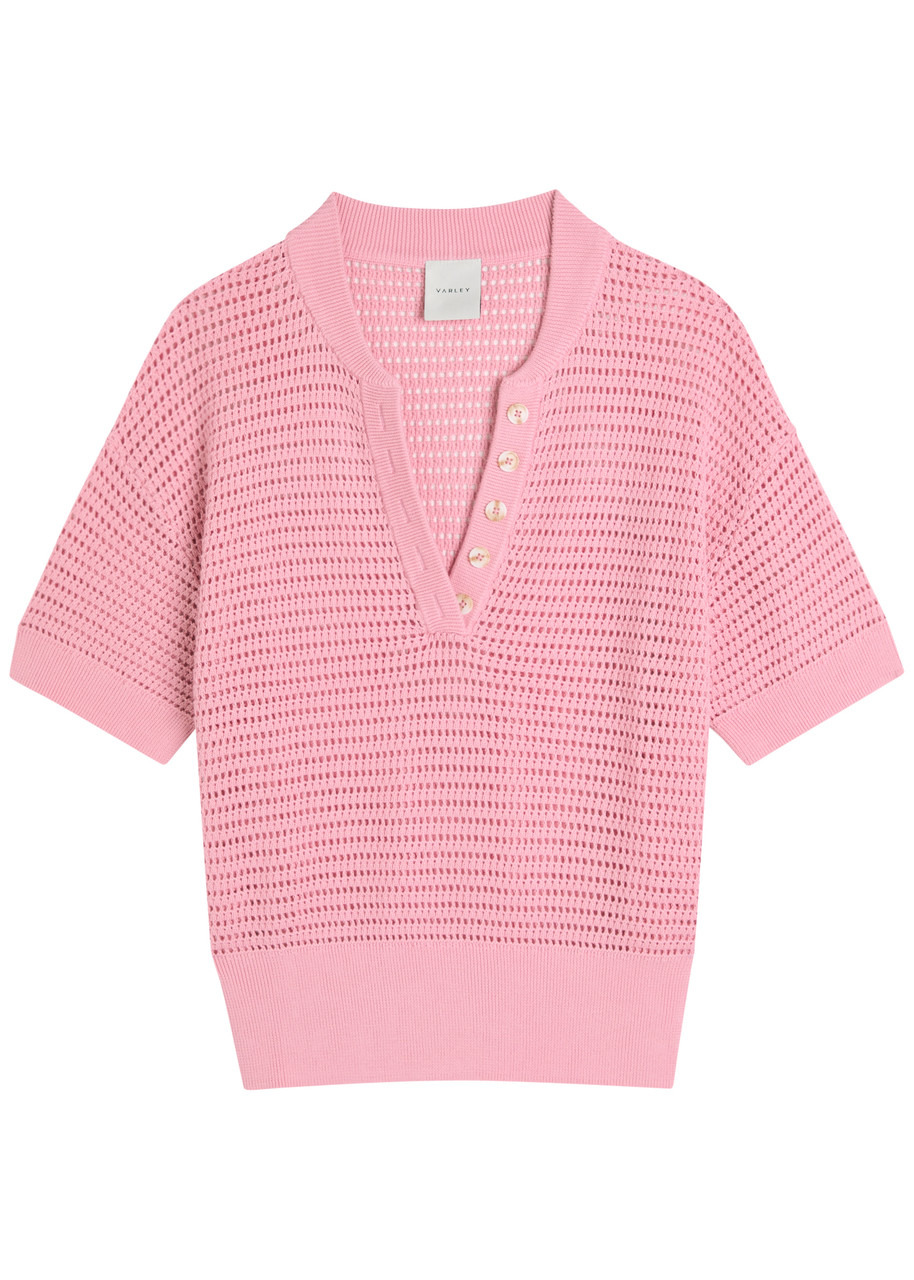 Callie open-knit cotton top Pink
