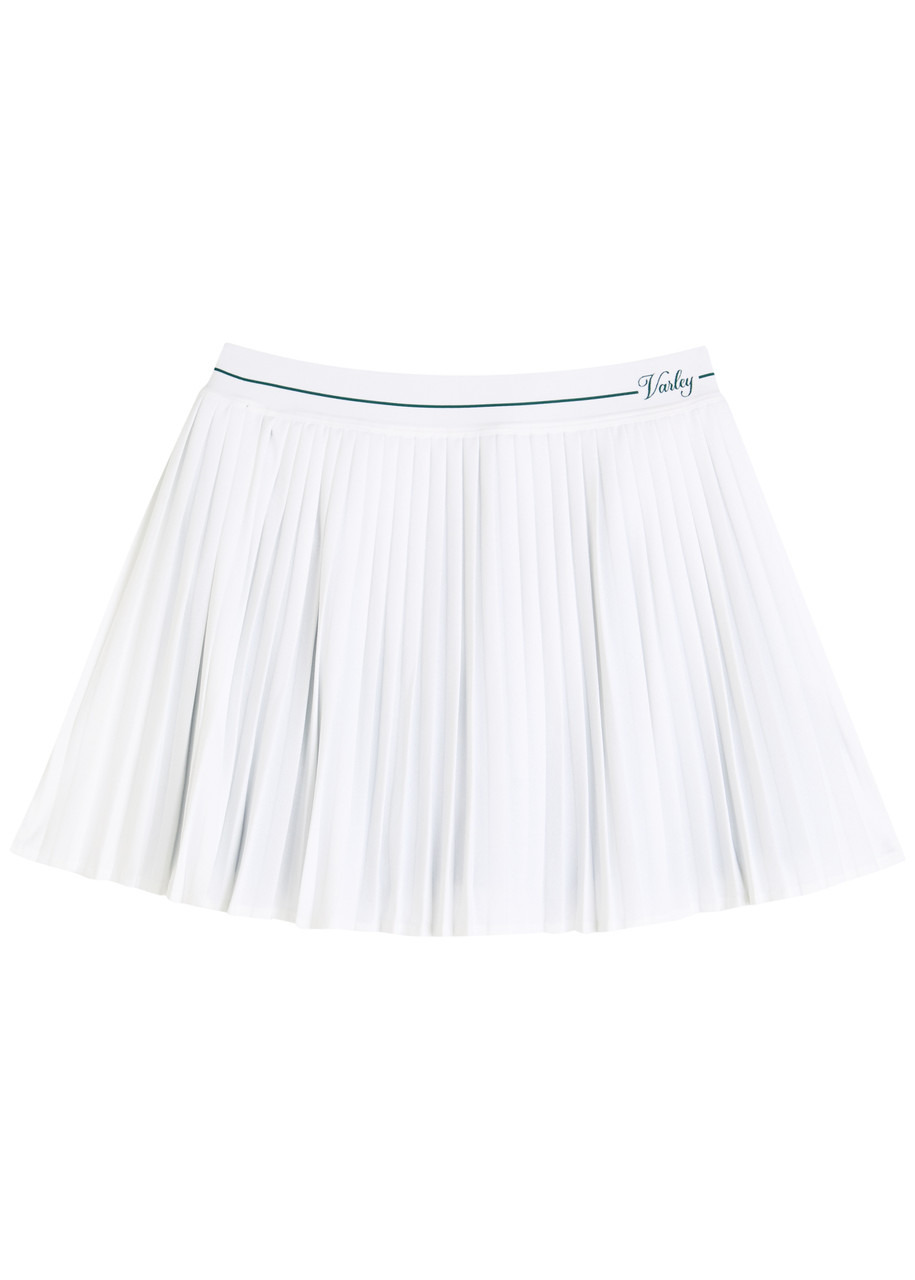 Info & Care Varley stretch-jersey skort Designer intarsia at elasticated waist, pleated,;shorts lining Pull on Fabric 1: 97% recycled polyester, 3% elastane; lining: 75% recycled polyester, 25% elastane Machine wash Size & Fit Length;waist;to hem: 13.5 inches/ 34cm Midweight Relaxed fit, slim across the waist Designed to sit high on the waist Model is 5'9"/ 175cm and wears a size small