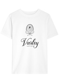 Info & Care Varley cotton T-shirt Ribbed crew-neck, printed front Slips on 48% pima cotton, 48% polyester, 4% elastane Machine wash Size & Fit Length shoulder to hem: 23.5 inches/ 59.5cm Midweight Regular fit Model is 5'10"/ 178cm and wears a size small