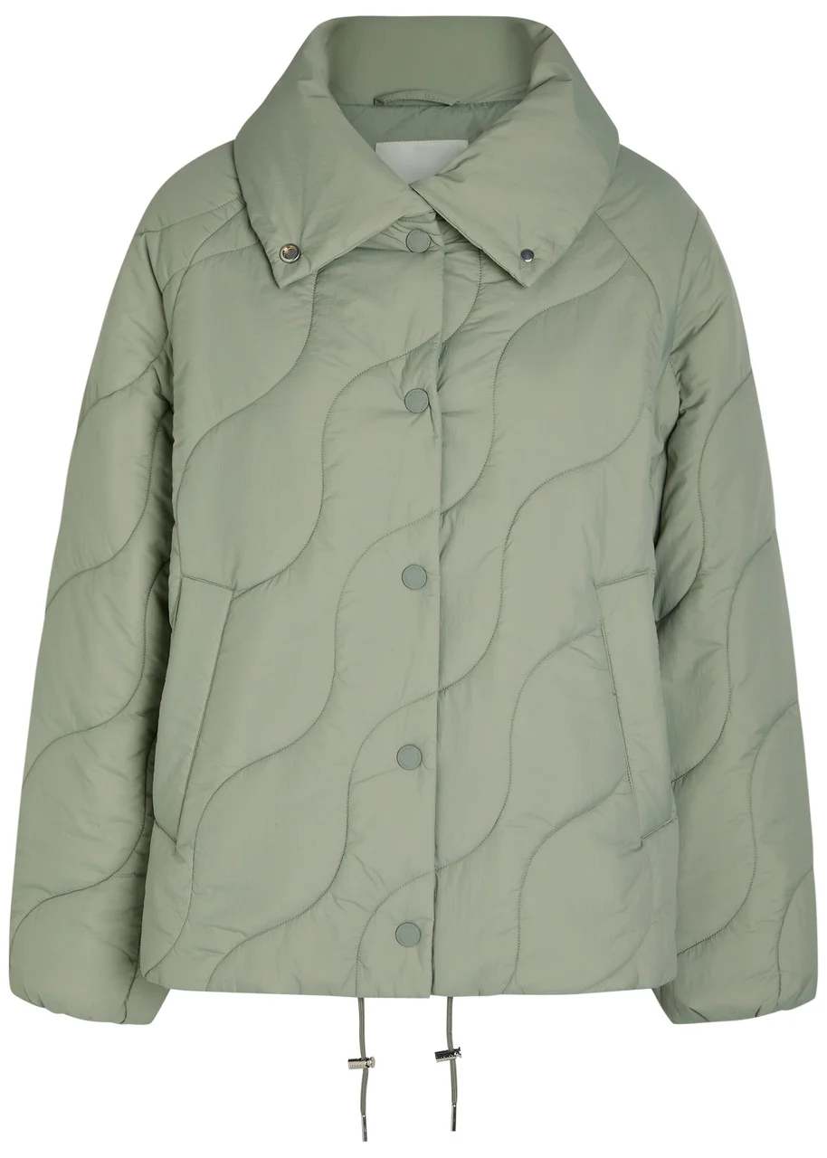 Info & Care Varley nylon jacket Quilted, press-stud fastening high-heck, raglan sleeves, elasticated cuffs, side slip pockets, internal toggle-fastening hem, fully lined; Press stud fastening through front 100% nylon Machine wash; Size & Fit Length shoulder to hem: 25 inches/ 64cm Midweight Relaxed fit Model is 5'9"/ 175cm and wears a size small