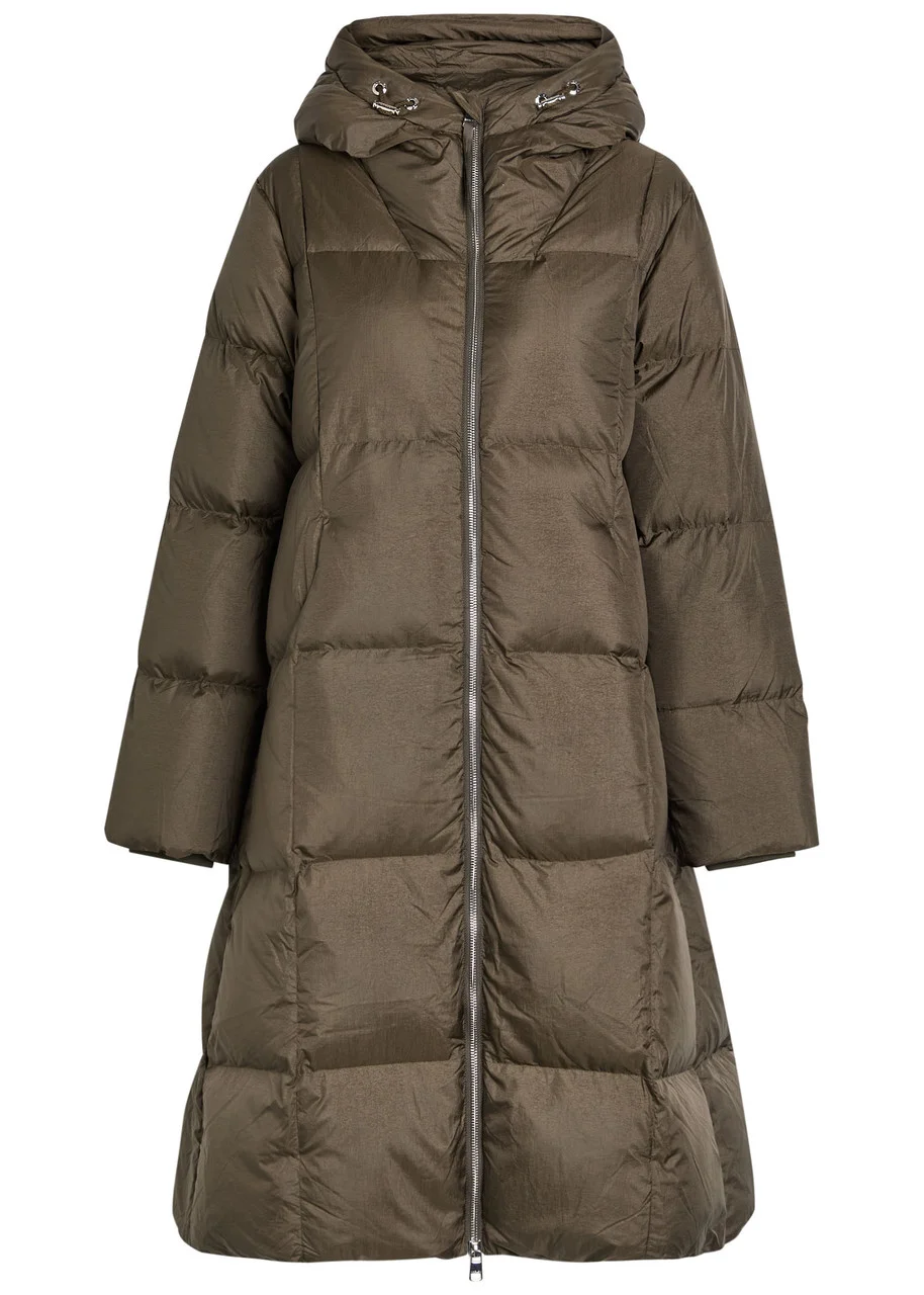 Info & Care Varley nylon coat Padded, toggle-fastening hood at high-neck, side slip pockets, internal zip-fastening pocket, fully lined Zip fastening through front 100% nylon; lining: 100% polyamide; fill: 90% duck down, 10% duck feather Machine wash Size & Fit Length shoulder to hem: 42 inches/ 106.5cm Midweight Relaxed fit Model is 5'10"/ 178cm and wears a size small