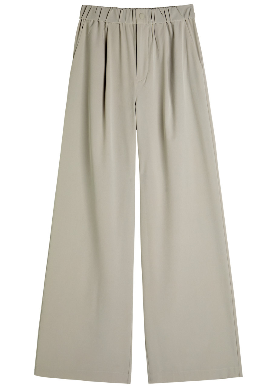 Info & Care Varley stretch-jersey trousers Elasticated waist, pleats at front, side slip pockets, faux slit pockets at back Concealed push-stud and zip fastening at front 86% recycled polyester, 15% elastane Machine wash Size & Fit Inside leg length: 32 inches/ 81cm Midweight Mid-rise fit, wide-leg cut Model is 5'9"/ 175cm and wears a size small