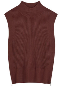 Info & Care Varley knit;top Ribbed, high-neck, cap sleeves, zip-fastening side splits at hem Slips on 42% viscose, 30% polyester, 20% nylon, 8% lyocell Machine wash Size & Fit Length shoulder to hem: 24 inches/ 61cm Midweight Relaxed fit, straight cut Model is 5'10"/ 178cm and wears a size small