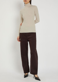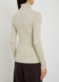 Info & Care Varley knit;top Ribbed, roll-neck,;stripe detail at trims Slips on 42% viscose, 30% polyester, 20% nylon, 8% lyocell Machine wash Size & Fit Length shoulder to hem: 23 inches/ 58.5cm Midweight Slim fit Model is 5'10"/ 178cm and wears a size small
