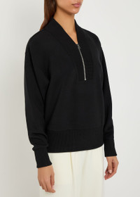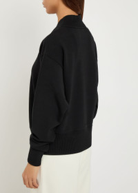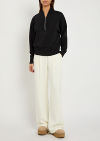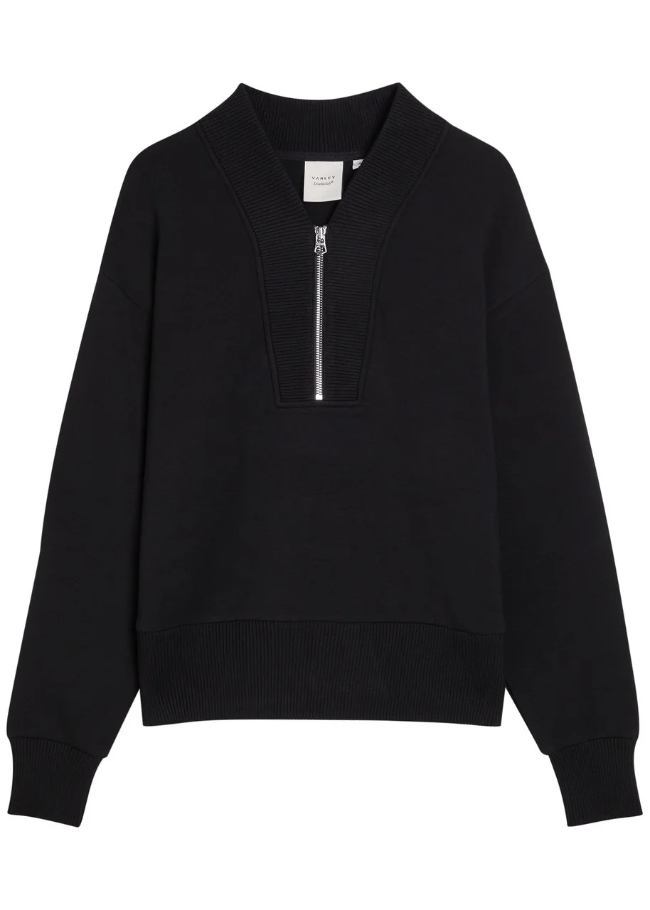 Info & Care Varley stretch-jersey sweatshirt Stand collar, zip-fastening V-neck, dropped shoulders, ribbed trims Slips on 81% viscose, 15% polyester, 4% elastane Machine wash Coordinating items available Size & Fit Length shoulder to hem: 25 inches/ 63.5cm Midweight Relaxed fit Model is 5'10"/ 178cm and wears a size small