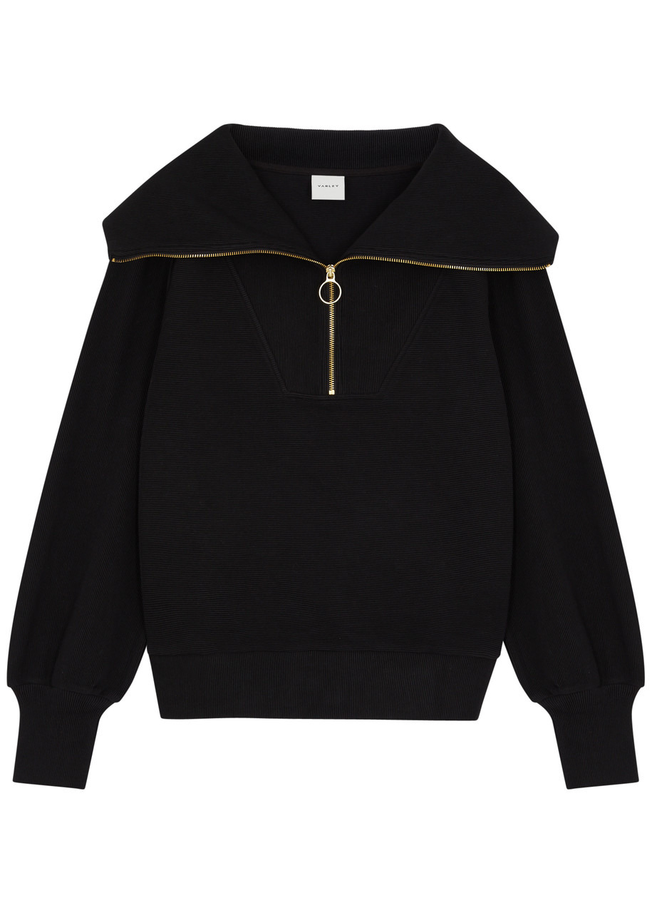 INFO & CARE - Varley jersey sweatshirt - Ribbed, shawl collar, zip-fastening neck, dropped shoulders, designer tag at side - Slips on - 53% cotton 46% polyester 1% elastane - Machine wash SIZE & FIT - Length shoulder to hem: 27 inches/ 69cm - Midweight - Relaxed fit - Model is 5'10"/ 179cm and wears a size small
