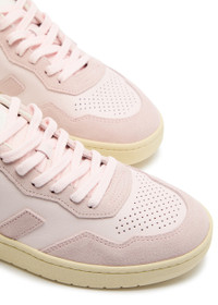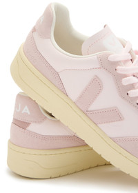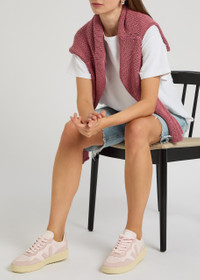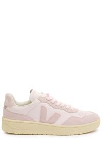 Info & Care Veja grained leather sneakers Designer-stamped padded tongue, suede panels, suede logo applique at sides, debossed style name at side, perforated details, designer-stamped heel panel, textured rubber midsole, rubber sole, round toe; Lace-up front Size & Fit Only available in full sizes, go up to the nearest whole size if you take a half size;