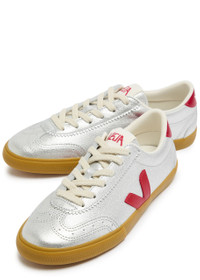 Info & Care Veja metallic leather sneakers Embroidered designer plaque at tongue, rubberised V logo applique at sides,;panelled, perforated details, designer stamp at contrasting heel panel, zigzag trims, grained finish, textured rubber midsole, rubber sole, round toe Lace-up front Size & Fit Only available in full sizes, go up to the nearest whole size if you take a half size;