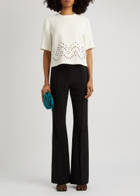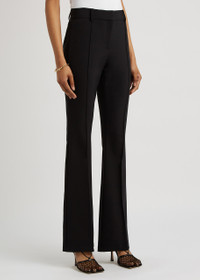STYLE NOTES Veronica Beard’s Hibiscus trousers are sculpted to a skinny silhouette that’s tailored to gently flare from the knee. This black pair is crafted from flattering stretch-crepe and feature defining pintucks through the legs. INFO & CARE - Dry clean - Inside leg length: 34 inches/ 86.5cm - Midweight - Skinny cut flared at the knee - Model is 5'10"/ 178cm and wears a size UK8/ US4 - Please note this style is particularly long for petite frames SIZE & FIT - Veronica Beard black stretch-crepe trousers - Pintucks through legs belt loops two back slit faux pockets - Concealed zip hook and button fastening at front - 86% nylon 14% elastane